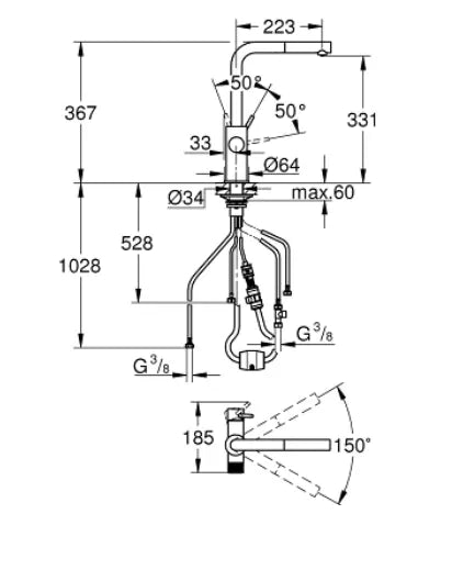 GROHE BLUE PURE MINTA FILTER FAUCET WITH PULL-OUT MOUSSEUR PHANTOM BLACK