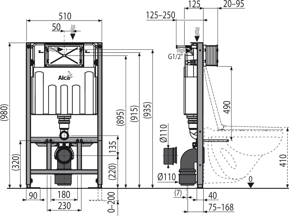 PRE-WALL INSTALLATION SYSTEM FOR GYPSUM BOARD FOR WALL HUNG WC SHORT