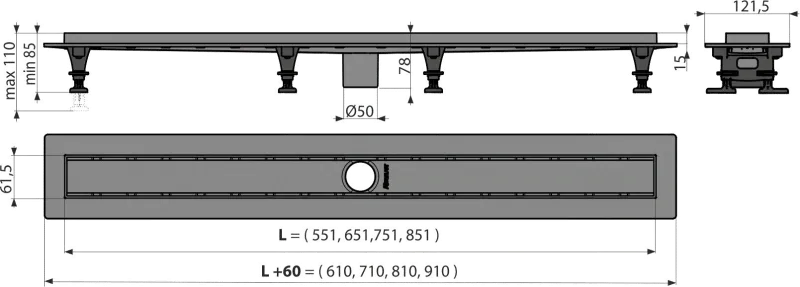 ALCADRAIN SHOWER DRAIN WITH AN EDGE FOR TWO-SIDED GRID