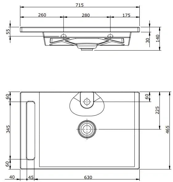 CLEAN WALL HUNG/FURNITURE BASIN WITH TOWEL RAIL 715x465x90MM