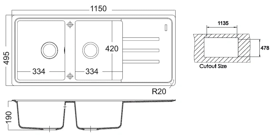 EASY 115 DOUBLE KITCHEN SINK 115×49.5CM