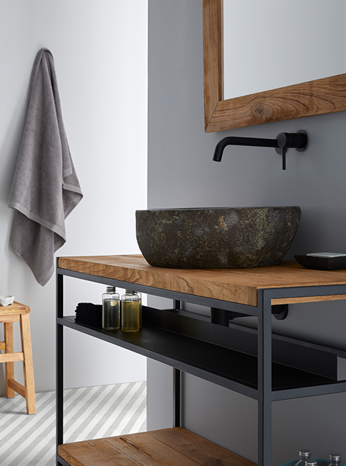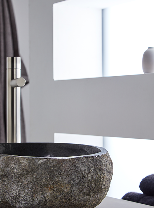River stone natural washbasin | Single piece cut directly from the stone | The exterior is rough and the interior is polished | Drilling to european standards. 45 x 40 x 15 cm | 25 kg